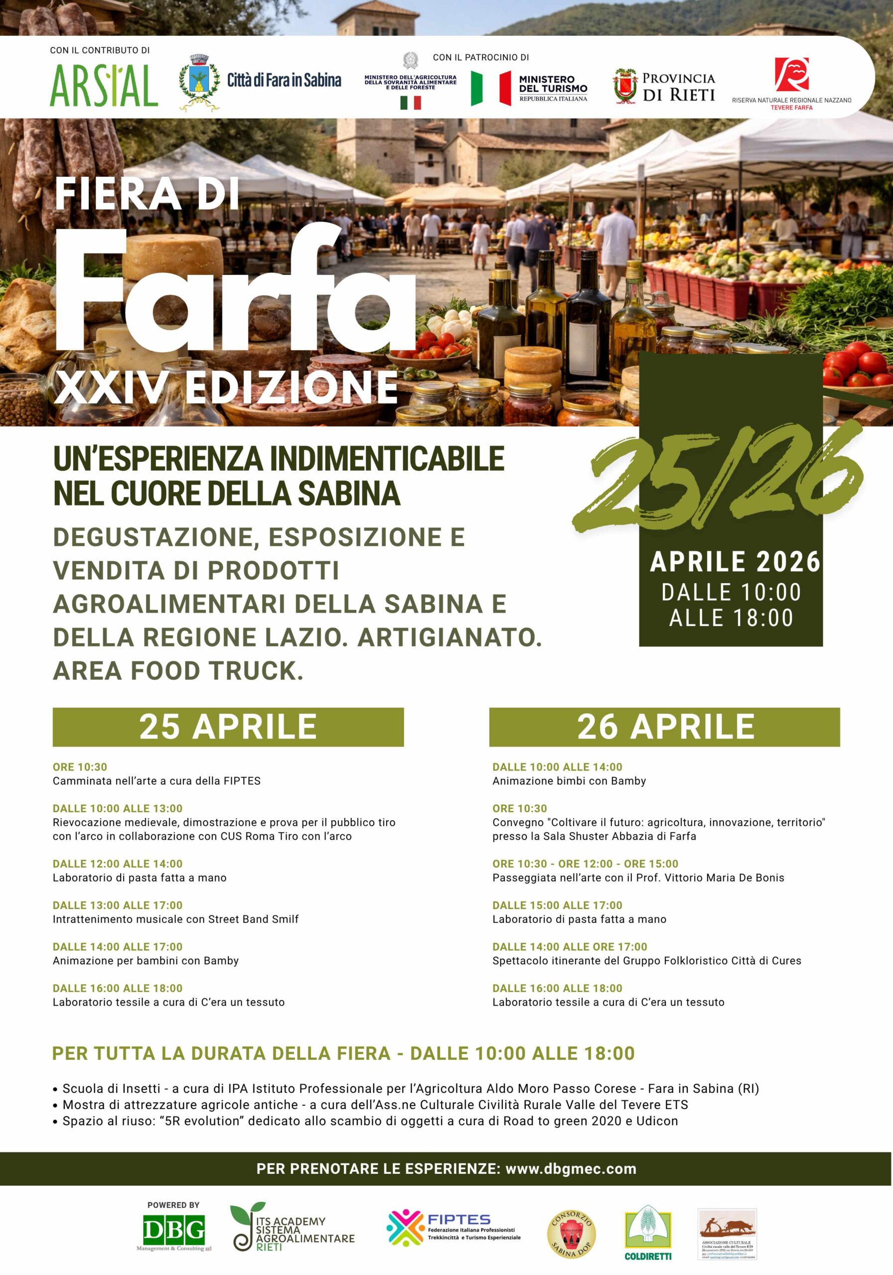 Il 25 e 26 aprile torna uno degli appuntamenti più attesi del territorio sabino, la XXIV edizione della Fiera di Farfa, promossa e organizzata dal Comune di Fara in Sabina, in provincia di Rieti. La manifestazione si svolgerà nello storico Borgo di Farfa, dalle ore...