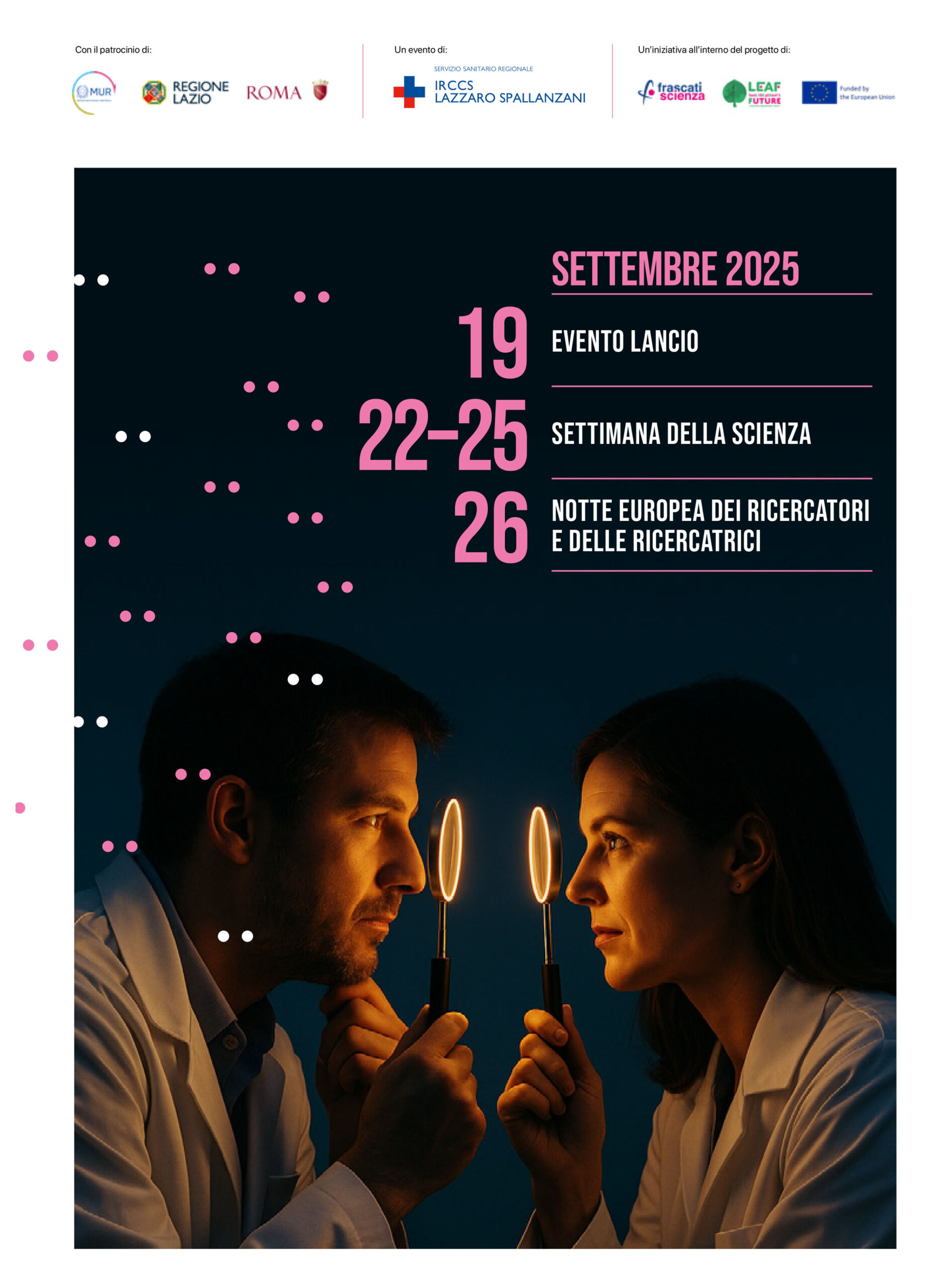 La nostra Settimana parte da questi presupposti e dalla nostra volontà di non chiuderci dentro i laboratori ma di aprirci al territorio” dichiarano il Direttore generale dello Spallanzani, Cristina Matranga, e il Direttore scientifico, Enrico Girardi. La Settimana della Scienza organizzata dallo Spallanzani vanta il patrocinio del Ministero dell’Università e della Ricerca, della Regione Lazio e del Comune di Roma. Il progetto LEAF è finanziato dal programma HORIZON-MSCA-2023-CITIZENS-01-01 della Commissione Europea.